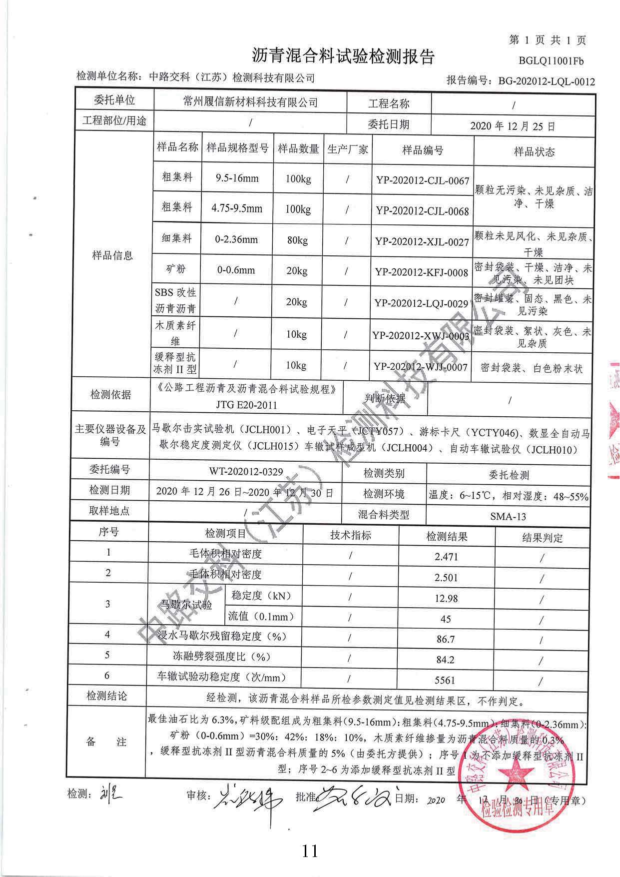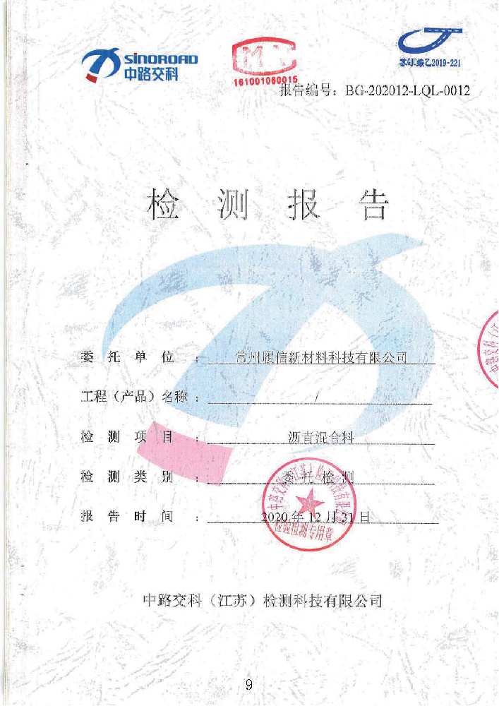 抗凝冰瀝青試件中路交科CMA認證檢測報告