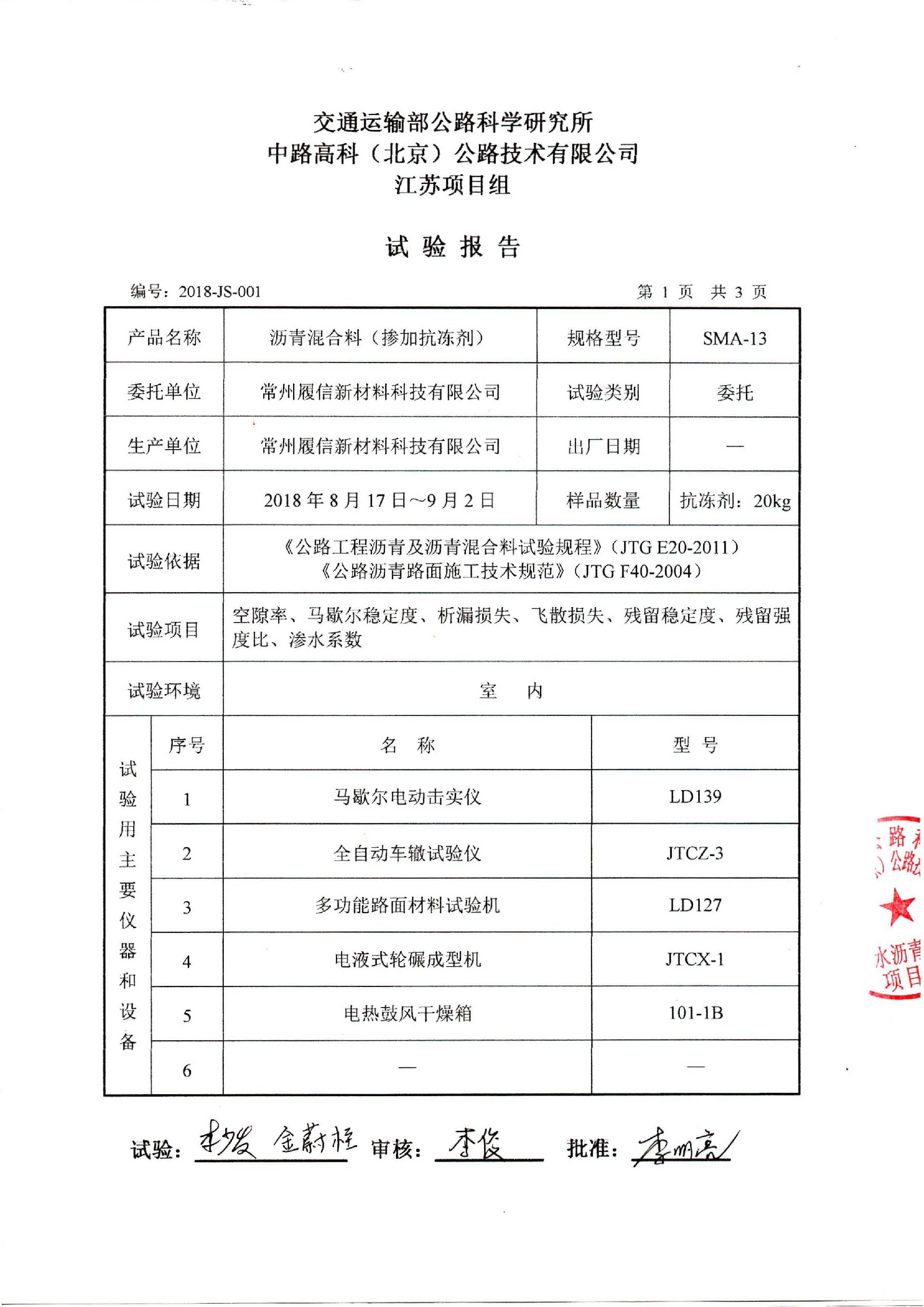 抗凝冰瀝青試件交通部公路科學研究所檢測報告